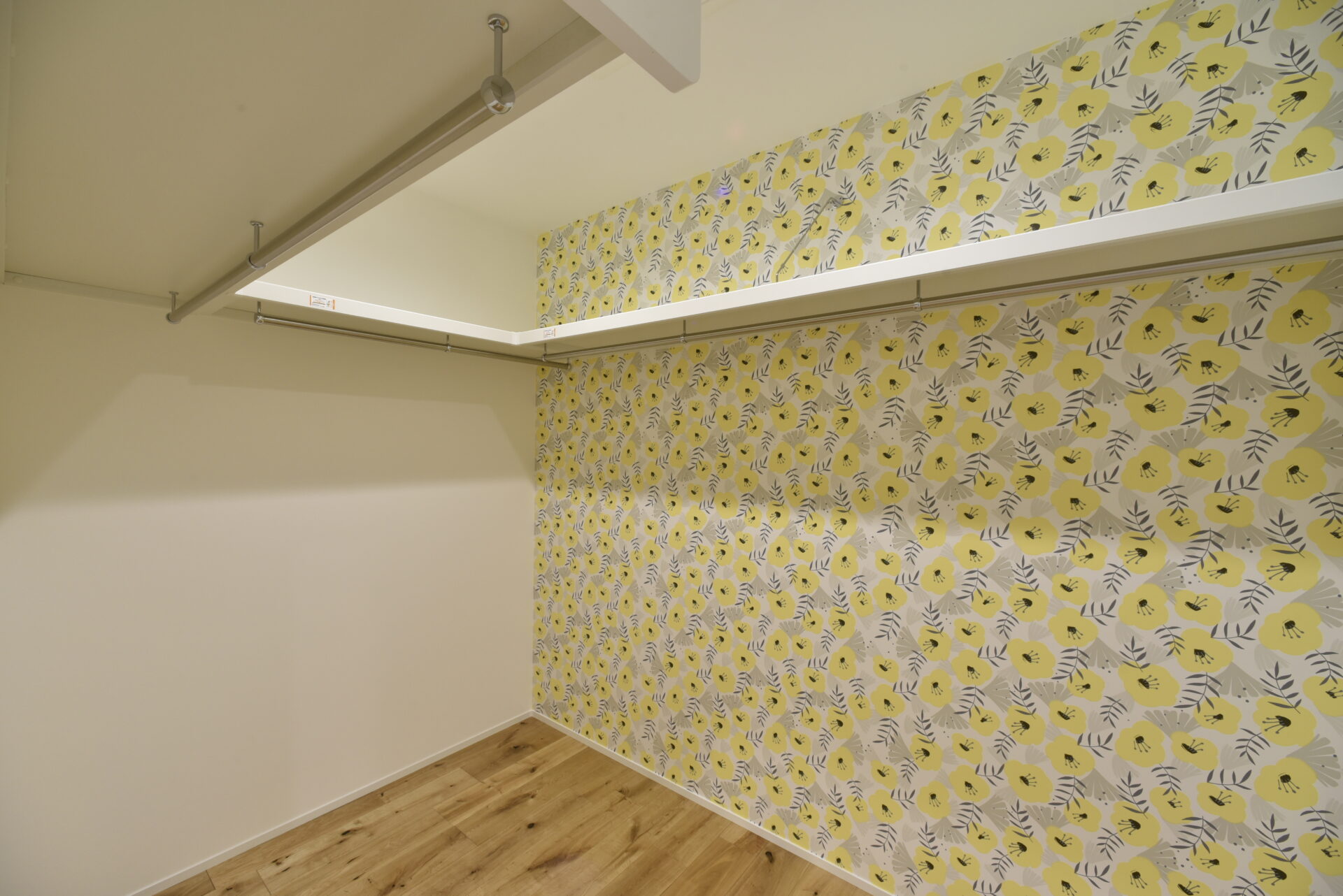 ランドリールームを中心に、ウォークインクローゼット、脱衣室+バスルーム、洗面室、キッチンへとそれぞれつながる快適な水廻り動線。家事がはかどる、秀逸な設計です。