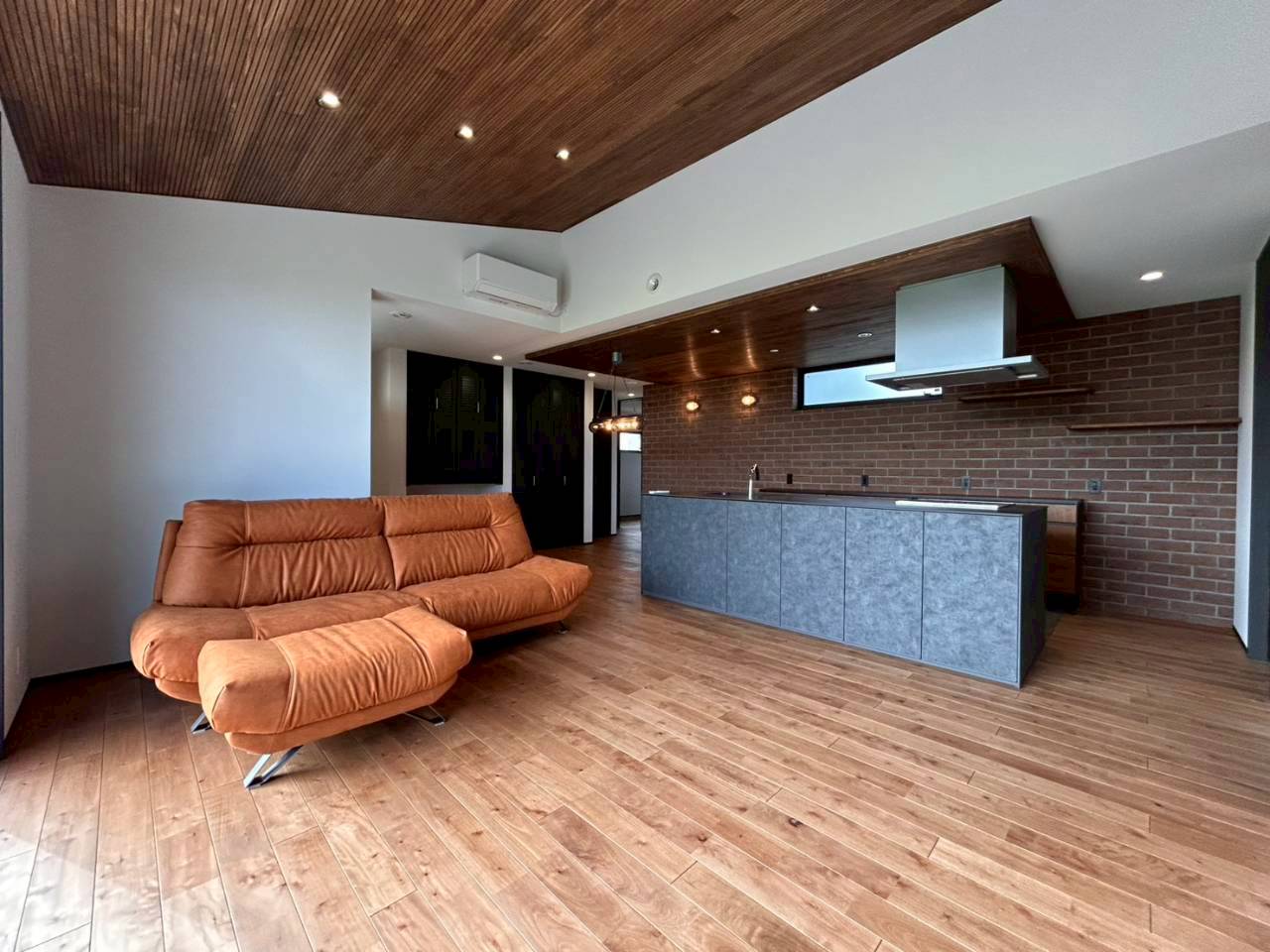 小城市にシンプルモダンの平屋が完成しました。スタイリッシュなアイランドキッチンを中心とした、センスのよさが際立つ住まいです。さらに、壁の外側と内側に断熱材を施すダブル断熱で、季節を問わず心地よく過ごせます。