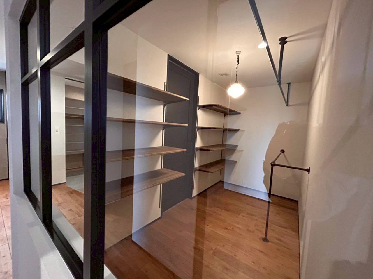 玄関は、シューズクロークを通る家族用動線と、正面から入る来客用動線に分かれた設計で、日常の片づけがしやすいのが特徴。さらに、パントリーを抜けてキッチンへ向かえるため、買い物後の収納もスムーズに行える家事動線になっています。